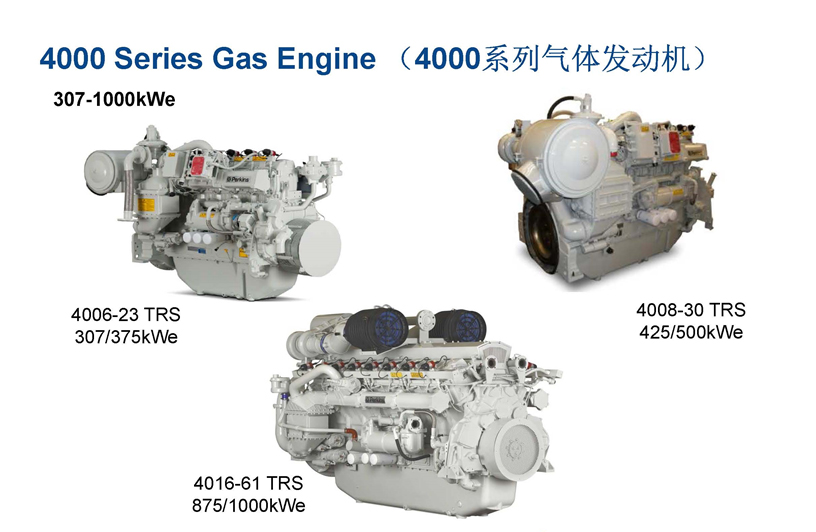 // 發動機選用珀金斯4000系列燃氣發動機提供動力。有直列6缸和8缸,以及V型和16型,氣缸容積由23到61升;